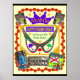 Esta poster, com seu contorno vermelho, celebra Mardi Gras em Mobile, Alabama. As três imagens mais baixas, Almirante Raphael Semmes à esquerda, um carrinho da Costa do Golfo, localizado em Mobile e visto no desfile de Mística Móvel em 2016, se não outros, e uma réplica da Bandeira do Estado do Alabama à direita, são tiradas de vários flutuadores na estação do Carnaval de 2016. A imagem de jester no topo é de um desfile de um casal de anos atrás. A coroa roxa no topo representa os ajustados festivos de "má governação" do Rei Felix, da Associação de Carnaval Móvel, durante a temporada de Carnaval. Os óculos riscados na área central representam as multidões das pessoas que observam ("olhos") os desfiles. Enquanto guarda-chuvas decorados fazem mais parte do Mardi Gras de Nova Orleans, eles são vistos em Mobile também, acrescentando um pouco mais de personagem à feliz ocasião da frivolidade, de deixar seu cabelo cair, e se divertindo por um casal de semanas antes de entrar na estação mais sombria de Lenten antes da Páscoa. E a frase, "Laissez Les Bon Temps Rouler!" traduzida, significa "Deixe os Bons Tempos Rolarem!" E os bons tempos passam muitas vezes por ano em Mobile, Alabama!