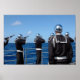 Os marinheiros disparam uma saudação de arma durante um enterro no mar.