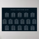Fundo de cor azul, marinho, moderno e mínimo sólido, gráfico de 16 assentos de mesa. Personalizar texto, personalizar estilo de fonte, cor e tamanho. Projetado para coordenar com nossa Coleção Floral de Blush Burgundy do Marinho.