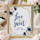 Poster Marinho Azul Dourado Amor Floral É Sinal Doce