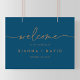 Este símbolo de boas-vindas clássico de ouro azul marinho é perfeito para um casamento moderno. O design simples e elegante apresenta a tipografia clássica e de rico em ouro. Faça esta poster com o nome da noiva e do noivo, e a data do casamento.
