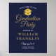 Um elegante sinal de boas-vindas festa de formatura com seus detalhes de formandos, definido em tipografia gráfica em um fundo azul marinho. Projetado por Thisnotme©