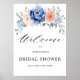 poster de boas-vindas, cor-de-rosa, azul-marinho, cor-de-rosa-pincelada, com buquê elegante de azul-marinho, azul-real, branco, rosa de jardim-pincelado, hydrangea e folhas verdes-sábias de eucalipto. Entre em contato comigo para obter ajuda sobre a personalização ou se você precisar de outro produto com este design.