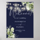 Poster Marinho Blue String Lights Floral Weding Bem-vindo