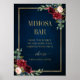 Poster Marinho Borgonha Blush Bar Dourado Floral Mimosa