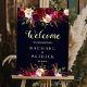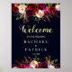 COR DE FUNDO ALTERÁVEL. Sinal de boas-vindas ao estilo Bohemiano, com a ilustração da cor d'água da burgundy, marsala, peões vermelhos e cor-de-rosa e rosas com destaque de penas sobre fundo azul marinho. Isto é perfeito para eventos do outono/outono/inverno, do estilo floral e boêmico. Itens correspondentes também estão disponíveis. * Clique no botão "Personalizar" para alterar a cor, a fonte e o tamanho.