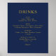 Este marinho clássico azul | cartaz de cardápio de bebidas de ouro é excelente de um simples casamento romântico e elegante. A paleta de cor azul-marinho escura e a tipografia mínima de vintage lhe dão um toque formal clássico. O design é flexível, perfeito para uma noite contemporânea básica, primavera, outono, verão ou casamento no inverno. Mantenha-o como está ou escolha personalizá-lo com trabalho de arte ou gráficos de sua escolha.