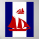 Póster Marinho de veleiros vermelhos e faixas brancas