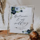 cor d'água pintada, flores azuis poeirentas e azuis-marinho e roteiro preto. O texto e as cores desta poster de sinal de casamento podem ser editados.