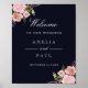 Póster Marinho rosa Watercolor Peonies Bem-vindos Sinal d