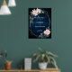 Poster de boas-vindas florais azuis-escuras azuis-marinho de-de-boas-vindas, com elegante buquê de azul-marinho, azul-real, branco, rosa-pincel e folhas de eucalipto verdes-sábio e elegante quadro neutro geométrico com brilho. Entre em contato comigo para obter ajuda sobre a personalização ou se você precisar de outro produto com este design.