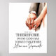The focal point is a man and woman holding hands, symbolizing a sacred union — likely in the context of marriage. The bride’s hand features a diamond ring, and the groom is dressed in a suit, suggesting a wedding or covenantal commitment.
