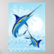 Poster Marlins Azul Saltando do Oceano