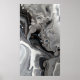 Póster Mármore Fluido Preto Branco Abstrato Cinza Prata