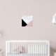 Design geométrica moderna com brilho de rosa dourado, mármore branco e preto.