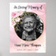 Um simples e elegante pôster de cavalete de funeral de mármore rosa e dourado em memória, obituário com flores de rosa rosa e informações editáveis, envie a imagem de seu ente querido.