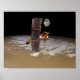 A espaçonave Mars Odyssey passa por cima do polo sul de Marte em destaque com o horizonte.