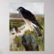Um norte harrier ou gavião-pântano sentado em um toco sobre pântanos numa ilustração antiga de um livro de aves de 1922.