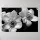 Renderização em preto e branco de um par de Marsh Marigold florescendo, mostrando detalhes extremos em folhas e flores internas.