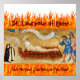 "Vire-me", ele disse aos seus carrascos. "Estou farto deste lado!" Conhecido especialmente pelo seu sentido de humor, Rua. Lawrence de Roma (século III) é um dos mártires mais famosos da Cidade Eterna. Nós gostamos de pensar que ele seria divertido por nossa coordenação de "Griling (ou Cozinhar) com" produtos! + Neste esplêndido quadro de c. 1430, do artista veneziano Jacobello del Fiore, Rua. A disparidade de tamanhos das figuras principais é uma característica da arte que não emprega perspectiva. Quanto maior a figura, mais importante a pessoa retratada na composição, sendo Deus o Pai uma exceção aqui. Lawrence, propenso no ferro-velho, domina esta cena. Ao erguer o tronco superior nos cotovelos e com as mãos dobradas em oração, o Santo olha para Deus com uma expressão serena no rosto. Tal como era costume na arte pré-renascentista, Deus, o Pai não é representado como figura humana cheio, mas apenas como uma cabeça emergente das nuvens no canto superior esquerdo da imagem onde apenas a Mão de Deus teria aparecido simbolicamente em tempos anteriores. À direita do painel, Ruas. Os carrascos de Lawrence, a seguir em tamanho relativo e importância para ele, tendem o fogo debaixo do ferro-duro com ataques de longo alcance, o que está na frente protegendo seu rosto do calor das chamas. À esquerda, há duas freiras ajoelhadas, freiras que ou encomendaram o próprio painel como objeto de devoção privada ou encomendaram o painel em nome do seu convento como parte de um trabalho de arte maior como um predella. São os menores números de todos. Os elementos subsidiários incluem dois pergaminhos com inscrições latinas, um no espaço acima da Rua. Lawrence é santo paterno de comediantes e cozinheiros. + Banquete: 10 de agosto + Image Credit (M 022): Martyrdom of Santo Lawrence, com Duas freiras, por Jacobello del Fiore (italiano veneziano; 1370-1439), pintura tempera sobre o painel de madeira no estilo internacional gótico, 27,7"x14,9" (70,5 cm) x 38 cm), Rijksmuseum, Amesterdã, Países Baixos, Acc. SK-A-4001. As freiras foram identificadas como dominicanos ou beneditinas. Do Wikimedia Commons {{PD-Art|PD-old-100}}. O arquivo de imagem foi identificado como livre de restrições conhecidas nos termos da lei de direitos autorais, incluindo todos os direitos relacionados e vizinhos. + Crédito de imagem (borda chamas): extensão/adaptação do clipe de borda de fogo (chamas digitais de fogo) por Diane Hudson, PublicDomainPictures.net, CC0 1.0 Universal (CC0 1.0) Dedicação do Dominio público.