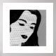 Flat graphic image of a woman in black ,white and gray. Look for others of the same image to make a grouping for stronge impact. Also a coordinating pillow for your couch!