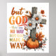 Design cor de cor e pacífica com uma bela cena de outono/outono com cruz de madeira, abóbora e flores de outono. O texto de inspiração colorido diz: "Mas Deus. Não havia como, mas Deus fez um jeito". Esse design está disponível em uma grande variedade de produtos.