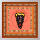 Máscara africana em quadro colorido sobre fundo castanho