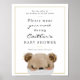 Bem-vindos convidados ao seu chá de fraldas e lembrá-los de vestir sua máscara com este adorável poster, apresentando um ursinho de cor d'água de quadro dourado vestindo uma máscara. Adicione o nome do convidado de honra, a data de chá e o texto de boas-vindas personalizado usando os campos fornecidos.