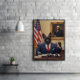 O POTUS Paws entrou no bate-papo — este Bulldog francês é adequado, inicializado e latido do coração do Oval Office. Vestindo um terno presidencial clássico e gravata vermelha, sua pata levantada e expressão focada roubam os holofotes. Atrás dele? A bandeira americana e um retrato de George Washington... também como um buldogue. É um cheio triótico de cena de charme e risos. Perfeito para patriotas amigos dos animais de estimação, viciados políticos, e amantes de derp digno.
