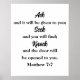 Este elegante poster verso Bíblia mostra uma passagem favorita de Escrituras de Mateus 7:7, o famoso verso da Bíblia de busca nocauteada. Ele é escrito elegantemente em duas fontes que são fáceis de personalizar na Ferramenta Design no botão Editar este na página. É fácil personalizar alterando as fontes, a cor ou a cor de fundo para torná-la exclusivamente sua. "Pergunte e ele será dado a você; procure e você encontrará; bata e a porta será aberta para você."