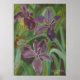 Uma pintura a óleo, de Y.L. Bordelon, de um trio de Luisiana Iris nativa roxa e madura.