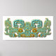 O deus onipresente maia era um dos deuses mais poderosos. Este design, renderizado em turquesa e ouro, vem de uma parede do templo maia.