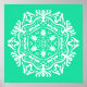 Esta mandala branca senta-se sobre um fundo verde minúsculo. As cores são muito relaxantes e leves. Parte da coleção Erghen Mandala.