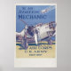 Essa reprodução de um vintage poster da Guerra Mundial apresenta um avião e o texto "Seja um mecânico de aviação no corpo aéreo".