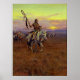 Esta é uma impressão de um antigo óleo de 1916, digitalmente aprimorado, em uma pintura de tela de uma cena do velho oeste americano mostrando um grupo de índios nativos americanos perambulando livremente nas planícies ocidentais ao pôr do sol por Charles Marion Russell.