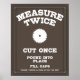 "Meça duas vezes, corte uma vez, libra no lugar, preencha lacunas, maldição, soco e chute as coisas como consequência". Texto, com uma lâmina circular. T-shirts, suores, posters, canecas, palhaço de presente novidade.