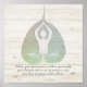 Instrutor de Meditação do Yoga Studio / Treinador de Vida / Healer / Mestre de Reiki / Poster de Massagem - Folha de Bodhi Verde Elegante e Yogi em pose de fácil assento / YOGA Easy Pose / Sukhasana Pose no fundo da madeira branca. "Quando você encontra paz dentro de si mesmo, você se torna o tipo de pessoa que pode viver em paz com os outros."