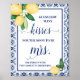 Azulejos do Mediterrâneo azul limões quantos beijos para que em breve seja a Sra. Jogo chá de panela. Clique em "Editar design" para personalizar ou modificar o layout (alterar texto, cor da fonte, estilo da fonte) **Corresponder a um pequeno cartão disponível - Verificar a coleção para todos os designs correspondentes! Como jogar: os convidados vão adivinhar quantos beijos estão num frasco.