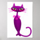 Um gato bonito e roxo com estilo de meio século. Feito em roxo e rosa