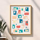 Elevem o seu espaço com este Meio século moderno poster da Era Atômica, com retângulos e estrelas funerários em azul celadônico, pêssego, lacre, amarelo e coral. Perfeito para amantes de design e padrões geométricos, esta arte de parede adiciona um toque de charme de safra a qualquer decoração caseira. Ideal para fãs dos anos 50 e 60.