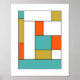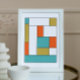 Este design moderno de meio século ousado apresenta blocos coloridos em azul-turquesa, laranja-escuro, ouro, branco e preto. Isso fará uma adição fabulosa às paredes da sua casa.