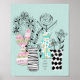 Essas flores engraçadas e caprichosas foram criadas usando caneta e tinta preta. Os vasos foram criados por meio de placas de aquarela em tons modernos de verde-rosa, lacre e dourado e preto. O design é personalizado com um nome, data ou uma mensagem especial. Você escolhe! Ou você pode remover tudo junto. Isso daria um presente de excelente aniversário para um amante da arte.