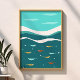 Poster Meio século Moderno de Ondas no Oceano de Verão