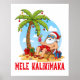 This vibrant and whimsical design perfectly captures the spirit of a "Mele Kalikimaka" holiday! It features Santa Claus in full vacation mode, relaxing under a palm tree adorned with festive Christmas lights and ornaments. Santa, sporting cool sunglasses, red swim trunks, and flip-flops, sips a colorful tropical drink with an umbrella, embodying ultimate relaxation. He's comfortably seated in a beach chair, surrounded by golden sand, charming seashells, and brightly wrapped presents. The cheerful sunny sky with fluffy clouds completes this warm, cartoonish illustration, making it an ideal representation of a playful holiday getaway.