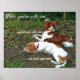 Dois cachorros paniel bonitos (um Brittany, outro misturado) estão lado a lado, um entrançado pela vida selvagem, um mascando um bastão. As palavras são "Quando estou com você... ...os esquilos parecem ao alcance......os pentes têm melhor gosto. Humor e carinhoso.
