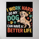 Este gráfico emocionado apresenta um cão de desenho animado alegre e marrom, energeticamente strid de médio, rodeado de impressões coloridas. O texto ousado em cores variadas diz orgulhosamente, "EU TRABALHO DURO PARA QUE MEU CACHORRO POSSA TER UMA VIDA MELHOR", expressando um sentimento comum entre os dedicados donos de animais de estimação. O design está definido em relação a um fundo preto sólido, fazer a mensagem pop. Download digital apenas para uso pessoal.