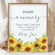 Honre a memória de um ente querido com este elegante Sinal de Mesa de Compartilhamento de Memórias de Girassóis.