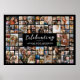 Cartaz de celebração de vida memorial com uma colagem de 100 fotos de momentos especiais do seu ente querido perdido, a mensagem de condolências "celebrando a vida de", o nome dele e as datas de nascimento e morte.