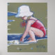 Garotinha com chapéu brincando na areia com ondas de praia... jogando na praia com uma criança? Você brincou com a umidade das ondas e a areia da areia? Esta é uma bela pintura de uma garotinha brincando com as ondas pequenas na beira da praia é um belo presente para o seu amado penteador de praia. Ela está vestindo um maiô vermelho e tem um chapéu branco grande para se manter longe do sol. O bebê da praia está feliz brincando sozinho, totalmente concentrado na sensação da água escorregadia pendurada em suas mãos. É um dia de praia - um dia maravilhoso de praia para uma menina, com muita água salgada para brincar, e um mundo de areia de praia para encontrar conchas, castelos de areia esculpidos, e pregar ao sol. Este é o presente perfeito para o beachcomber em sua vida, e para a pessoa que ama o oceano. É uma memória excelente de nossa própria juventude passada na praia, ou talvez se pareça com sua própria filha ou neta na praia. A imagem é baseada em uma pintura, chamada "Sandy Water" pela artista da Flórida Mary Hubley.