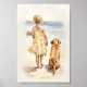 Vintage aquarela com uma garota e seu Labrador junto ao mar. Perfeitamente adequado para amantes de cães, fãs de labrdor, proprietários orgulhosos e criadores, celebra o vínculo entre humanos e seus amigos peludos. Presente ideal para adultos e crianças, homens, mulheres, rapazes e raparigas